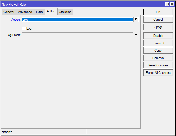 Berikut adalah tampilan list filter rules untuk drop traffic Youtube.