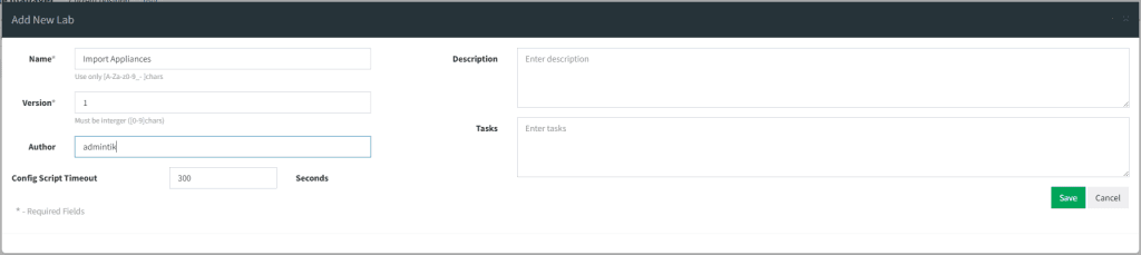 Jalankan mesin virtual EVE-NG kemudian masuk pada halaman dasboard awal. Buat satu lab contoh sebagai berikut.
