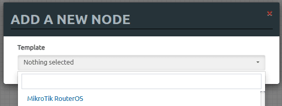 Buat node baru dengan opsi seperti pada gambar berikut. Sesuaikan setelan untuk node mikrotik.