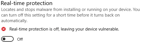 Fitur ini perlu dinonaktifkan terlebih dahulu agar file – file aplikasi filmora yang telah didonwload dan diextract tidak dikenali virus. Menu ini tersedia pada Windows Security > Virus & threat protection lalu matikan Real-time protection.
