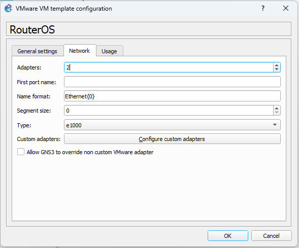Untuk konfigurasi network interfaces berada pada tab network. Tambahkan network jaringan yang akan digunakan untuk routeros.