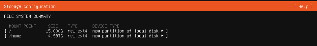 Berikut adalah list partisi yang sudah dikonfigurasi pada langkah sebelumnya.