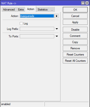 Buat satu rule srcnat dengan out interface ether1 atau mengarah ke mikrotik DHCP Server dan berikan action masquerade.