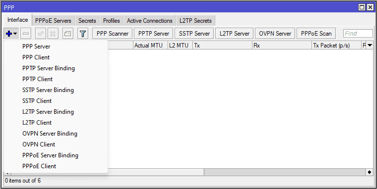 Masuk ke halaman PPP lalu tambahkan service PPPoE Client.