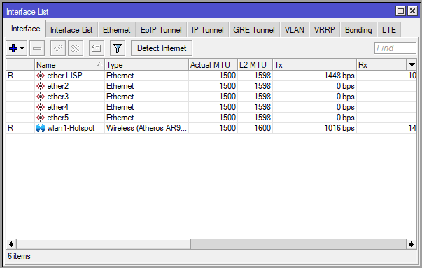 Tampilan list interface yang digunakan.