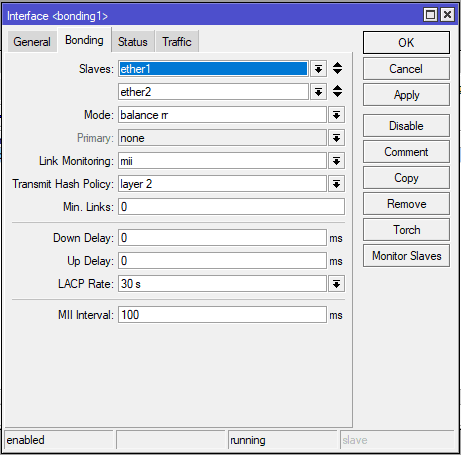 Jika bandwidth sudah muncul makan konfigurasi sudah berhasil dilakukan. Untuk memastikan masuk pada menu interface dan lihat traffic interface bonding yaitu jumlah maksimal bandwidth satu interface yang digabungkan.