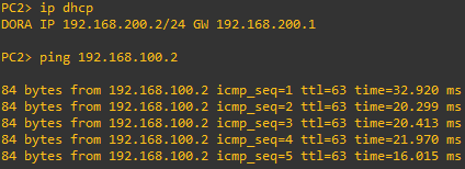 Jika setiap VPC 1 dan 2 sudah mendapatkan alamat ip dhcp sesuai dengan vlannya masing – masing serta pengujian ping bisa dilakukan, maka konfigurasi sudah berhasil.