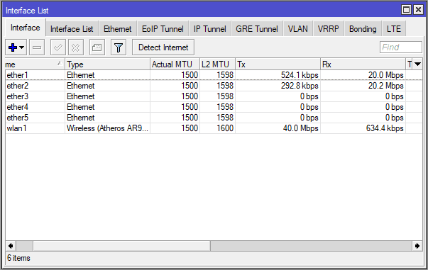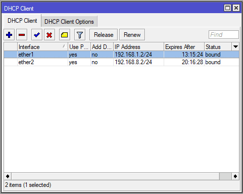 Lakukan langkah yang sama untuk interface ether2 sehingga tampilan ip address pada menu dhcp client.