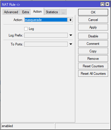 Lakukan hal yang sama pada interface ether2 sehingga ada dua rule NAT untuk masing – masing ISP.