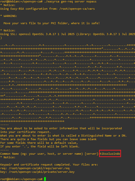 root@debian:~/openvpn-ca# ./easyrsa gen-req server nopass