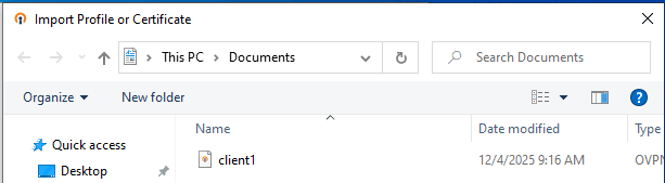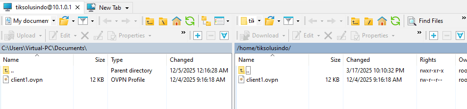 Salin file client1.ovpn menggunakan winscp dari server ke client.