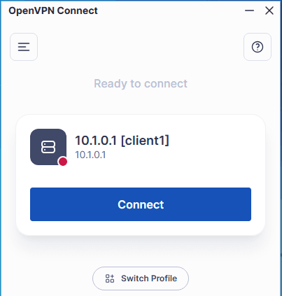 Jika berhasil maka akan muncul profile openvpn klik connect untuk mengkoneksikan ke jaringan openvpn.