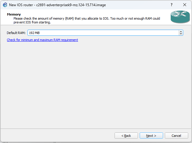 Berikan jumlah ram untuk IOS router, pada postingan kali ini menggunakan jumlah default ram.