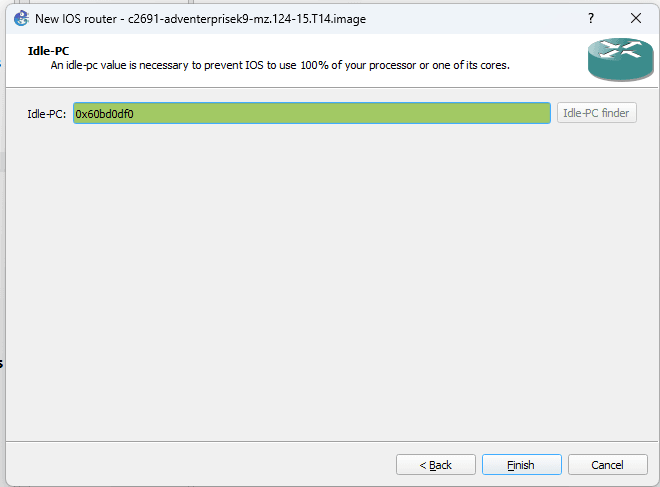 Klik Idle-PC finder, langkah ini berfungsi untuk memberikan core cpu untuk image IOS router.