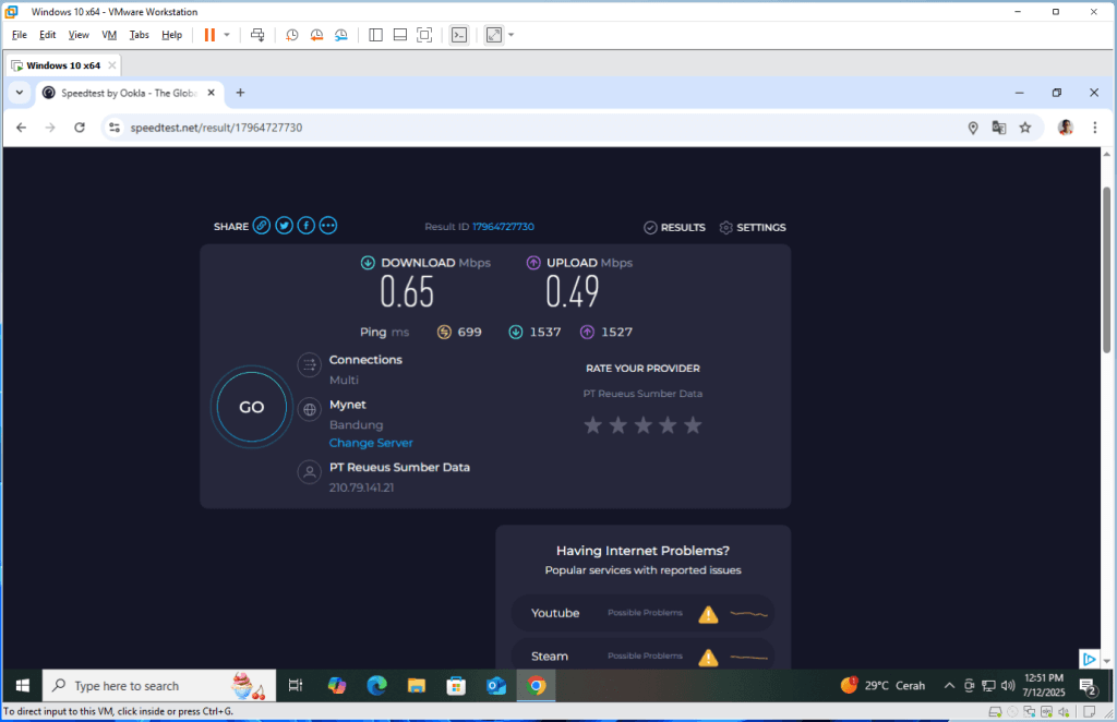 Berikan konfigurasi DHCP Client dan cobalah untuk melakukan speedtest jika sudah bisa maka konfigurasi sudah berhasil.