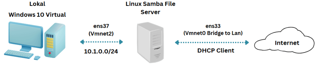 Samba adalah sebuah aplikasi linux yang berfungsi untuk membuat server file sharing. Dengan aplikasi ini seorang admin jaringan bisa mengatur akses folder yang hendak di request oleh client. Sistem ini cukup aman karena menggunakan otentikasi username dan password. Selain menggunakan otentikasi sistem ini menggunakan konsep hak akses untuk client dan folder yang akan dibagikan. Pada postingan kali ini akan dijelaskan konfigurasi samba untuk file sharing server. Preconfig sudah dilakukan untuk konfigurasi kali ini yaitu konfigurasi dasar ip dan repository.