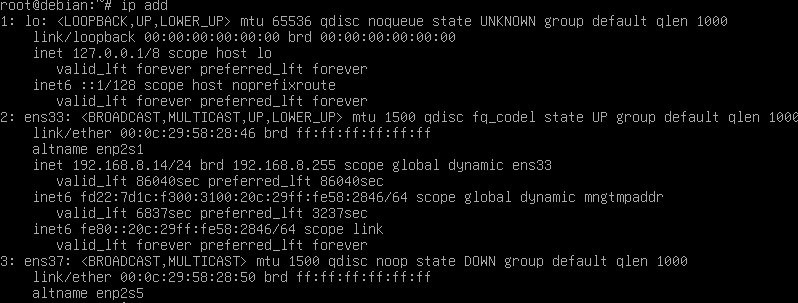 root@debian:~# ip addr