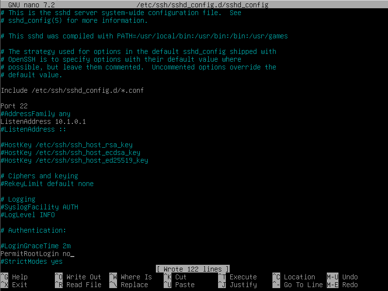 ListenAddress 10.1.0.1