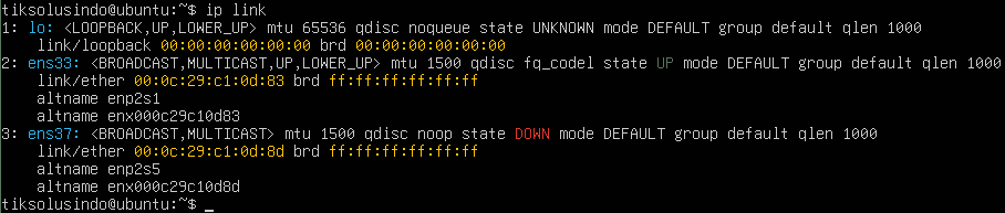 tiksolusindo@ubuntu:~$ ip link