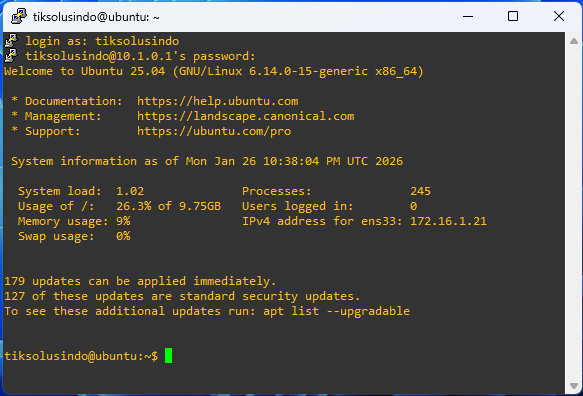 Kesimpulan pada postingan ini adalah konfigurasi ssh server pada linux ubuntu 25.04 agar linux dapat diremote dari jarak jauh. Selain itu dengan adanya akses ssh menggunakan putty maka akan mempermudah pengguna untuk menyalin command secara langsung kedalam linux ubuntu. Jika masih ada yang kurang dari penjelasan diatas bisa berkomentar pada kolom komentar dibawah.