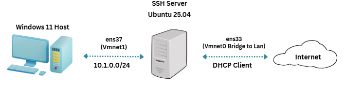 SSH Server adalah sebuah protokol yang berfungsi untuk akses remote jarak jauh. Protokol ini dilengkapi fitur enkripsi dalam penggunaan remote sehingga komunikasi bisa lebih aman dari penyadapan, pembajakan koneksi, dan serangan lainnya. SSH secara default menggunakan port 22. Pada postingan kali ini akan dijelaskan mengenai konfigurasi ssh server pada linux ubuntu 25.04. Linux ubuntu sudah dilakukan preconfig instalasi sehingga pada postingan ini menggunakan vm ubuntu clone.