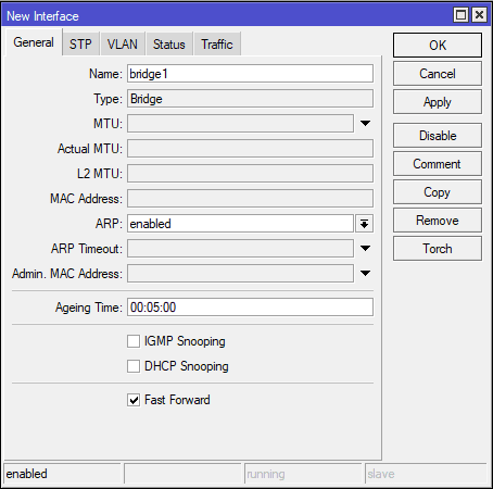 Tambahkan interface bridge baru pada menu Bridge lalu klik simbol “+”.