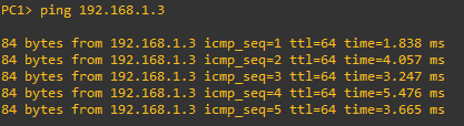 Beda halnya dengan PC1 > PC3 dua komputer tersebut bisa saling terkoneksi karena setiap interface memiliki PVID yang sama.