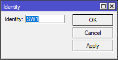 Masuk pada halaman system > Identity berikan hostname SW1.