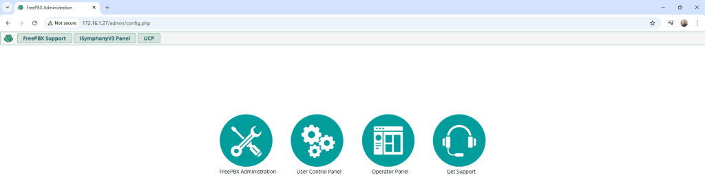 Pilih FreePBX Administration lalu login dengan username dan password.