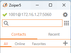 Berikut adalah tampilan zoiper user 1 pada Host Computer. Lakukan hal yang sama untuk registrasi pada perangkat windows 10 virtual.