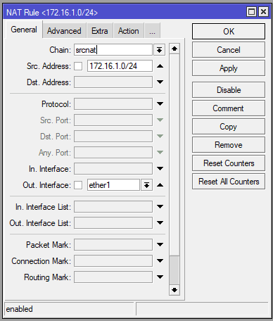 Berikan default route kearah internet melalui gateway seperti biasa.