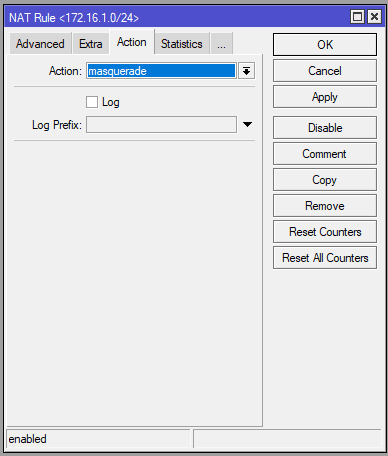 Pada konfigurasi firewall nat berikan akses untuk network yang digunakan oleh VPN L2TP dengan action masquerade. Langkah ini digunakan mentranslasikan hanya jaringan VPN L2TP ke internet sedangkan jaringan lokal 10.1.0.0/24 tidak bisa akses ke internet.