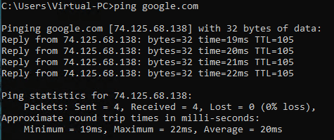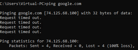 Berikut adalah hasil cek ping google jika VPN L2TP belum terkoneksi.