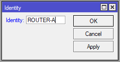 Berikan konfigurasi hostname pada Router A agar tidak tertukar dimenu System > Identity.
