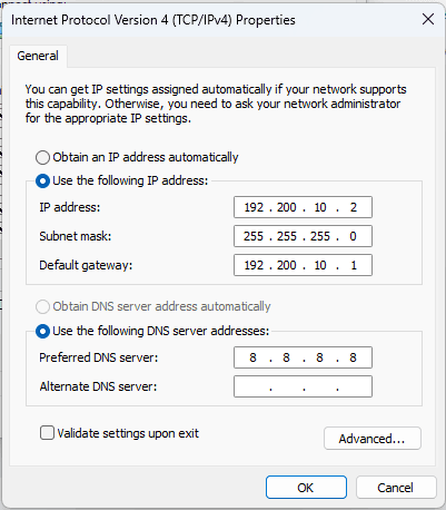 Konfigurasi DNS sesuai konfigurasi DNS sebelumnya yaitu dengan cara menambahkan DNS Google dan alamat gateway ISP.