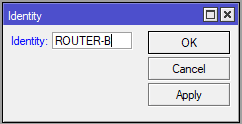 Lakukan hal yang sama pada Router B yaitu mengubah hostname pada menu system > Identity dan merubah deskripsi pada menu interface.