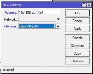 Berikan ip address interface wlan sesuai dengan soal pada menu IP > Addresses.