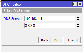 Tambahkan konfigurasi DNS sama dengan Router A dengan memasukan DNS Google. Jika sudah masuk pada IP > DHCP Server > DHCP Setup untuk mengkonfigurasi DHCP Server untuk interface wlan1-WLAN.