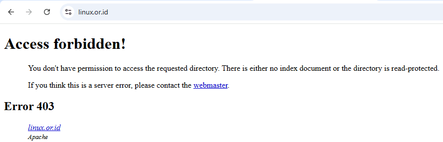 Pengujian proxy dilakukan pada komputer Router A. Masukan alamat domain yang dilakukan blocking pada web browser jika halaman muncul seperti gambar dibawa maka konfigurasi proxy berhasil.